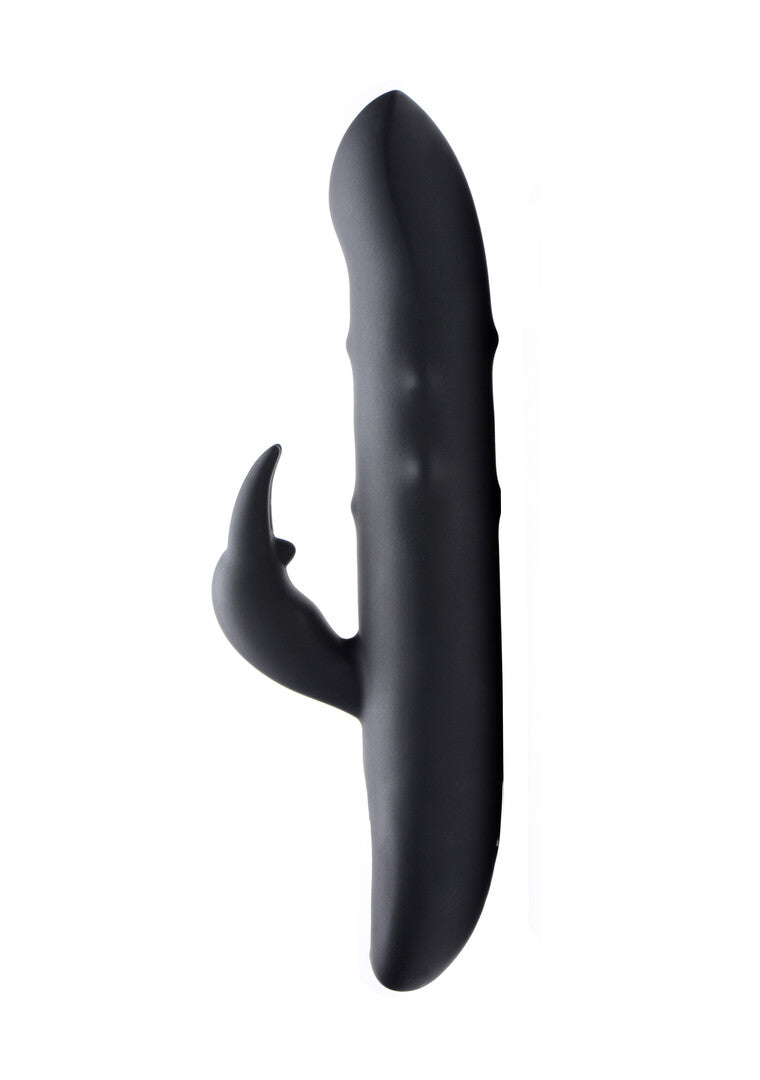 Βιώστε έναν μικτό οργασμό από το λαγουδάκι που βουίζει ευχάριστα στην κλειτορίδα σας και το απαλό σαν μετάξι στέλεχος που προσομοιώνει μια κίνηση "Come-Hither" στο σημείο G σας. Αυτός ο δονητής σιλικόνης υψηλής ποιότητας διαθέτει 3 ταχύτητες βουητού και 7 μοτίβα παλμών, καθώς και ένα μεγάλο στέλεχος που κάμπτεται πάνω και κάτω για να χαϊδεύει το σημείο G σας με 3 δικές του ταχύτητες. Ο κομψός πίνακας ελέγχου με τα πολύτιμα πετράδια είναι εύκολος στη χρήση. Μια προεξέχουσα μύτη λαγουδάκι θα εντοπίζει την κλειτορίδα σας για δόνηση, ενώ τα αυτιά θα τρεμοπαίζουν γύρω της για μια εντελώς διαφορετική αίσθηση. Αυτό το εργαλείο ευχαρίστησης είναι μαγνητικά επαναφορτιζόμενο και αδιάβροχο, ώστε να μπορείτε να περιποιηθείτε τον εαυτό σας στο μπάνιο ή το ντους. Το υλικό χωρίς φθαλικές ενώσεις είναι μη πορώδες για εύκολο καθάρισμα με ήπιο σαπούνι ή καθαριστικό παιχνιδιών. Αποφύγετε τη χρήση με λιπαντικά σιλικόνης.
