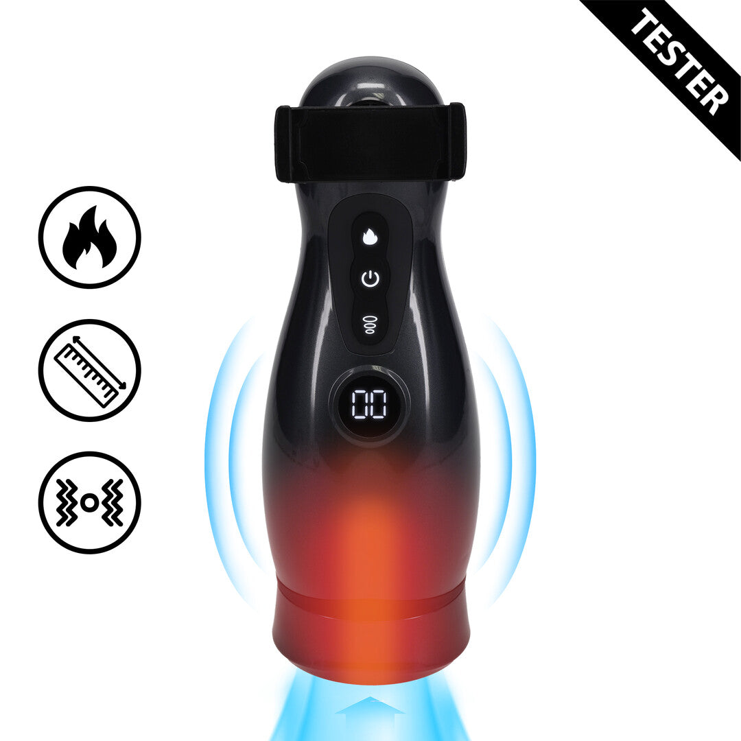 Ο αυνανιστήρας Virtuo σας προσφέρει άφθονες δυνατότητες για να διασκεδάσετε. Το λείο περίβλημα εξασφαλίζει μια άνετη εμπειρία. Εκπλήξτε τον εαυτό σας κάθε φορά με το πόσο μεγάλο μπορείτε να γίνετε! Ένα σύντομο κλικ στο κουμπί αναρρόφησης ξεκινά ένα ισχυρό κενό, βοηθώντας σας να επιτύχετε μια ισχυρή στύση. Μόλις τοποθετηθεί, ένα γρήγορο κλικ στο κουμπί λειτουργίας ενεργοποιεί τη λειτουργία δόνησης, ενώ ένα κλικ στο κουμπί θέρμανσης ξεκινά τη λειτουργία θέρμανσης.